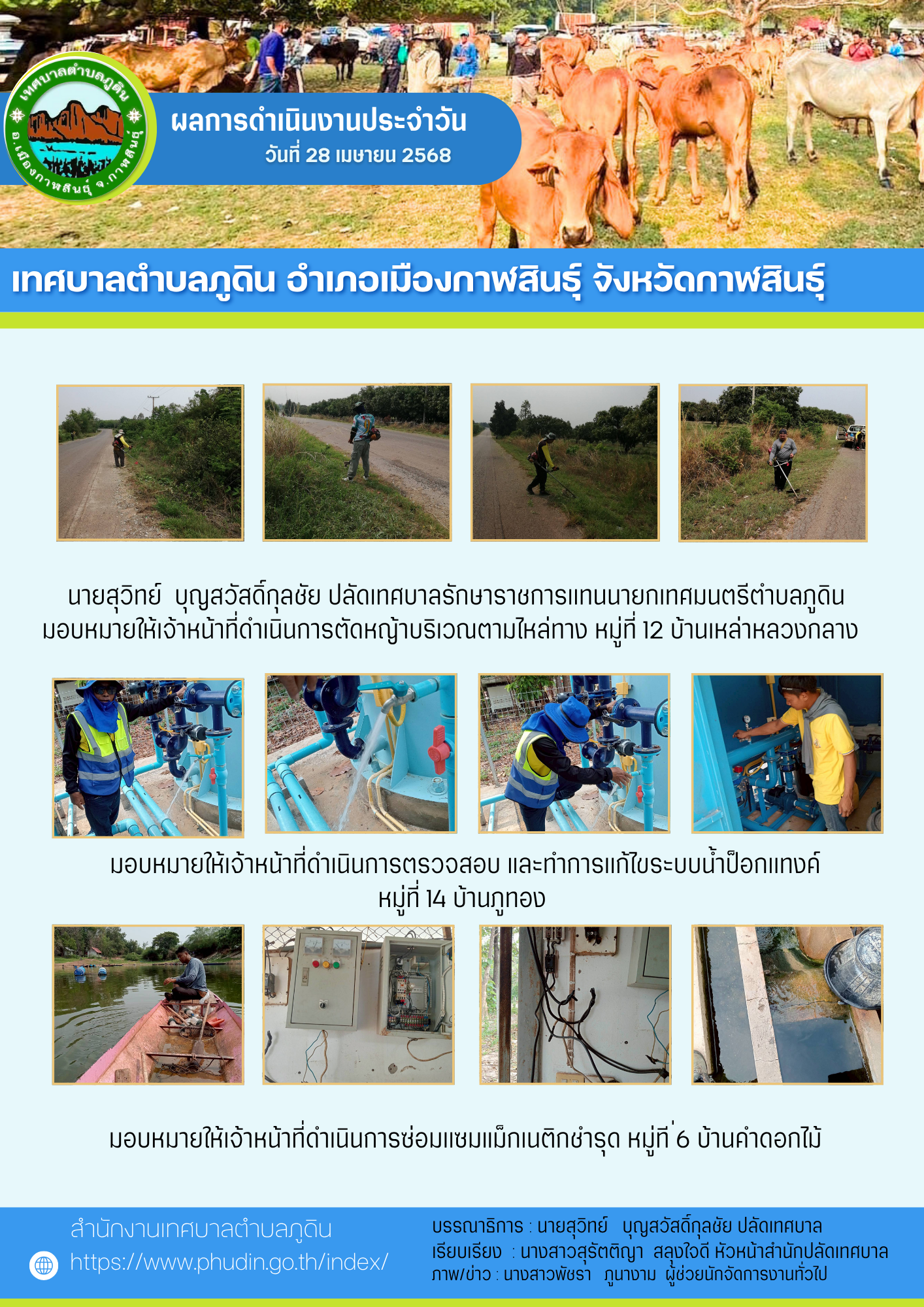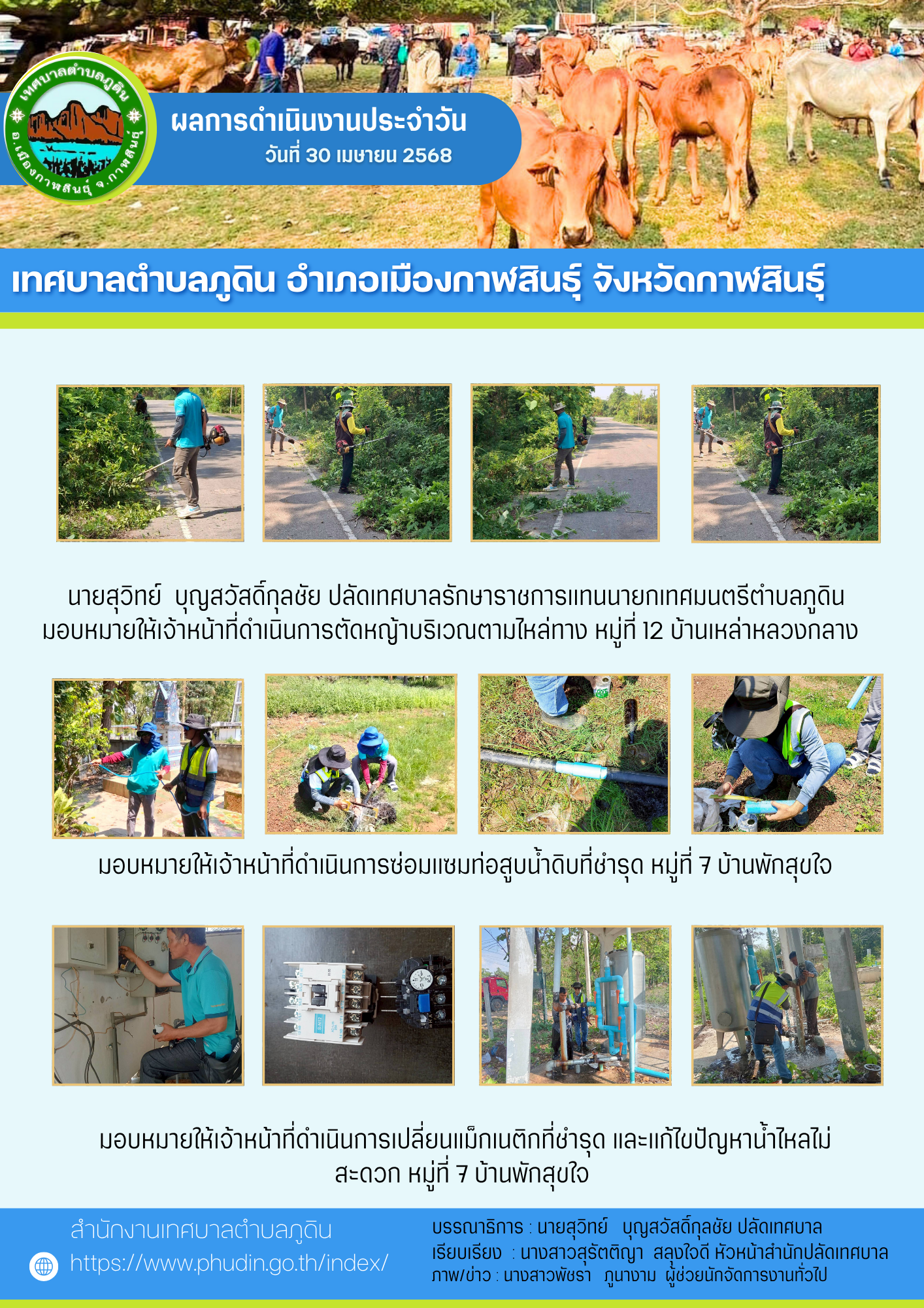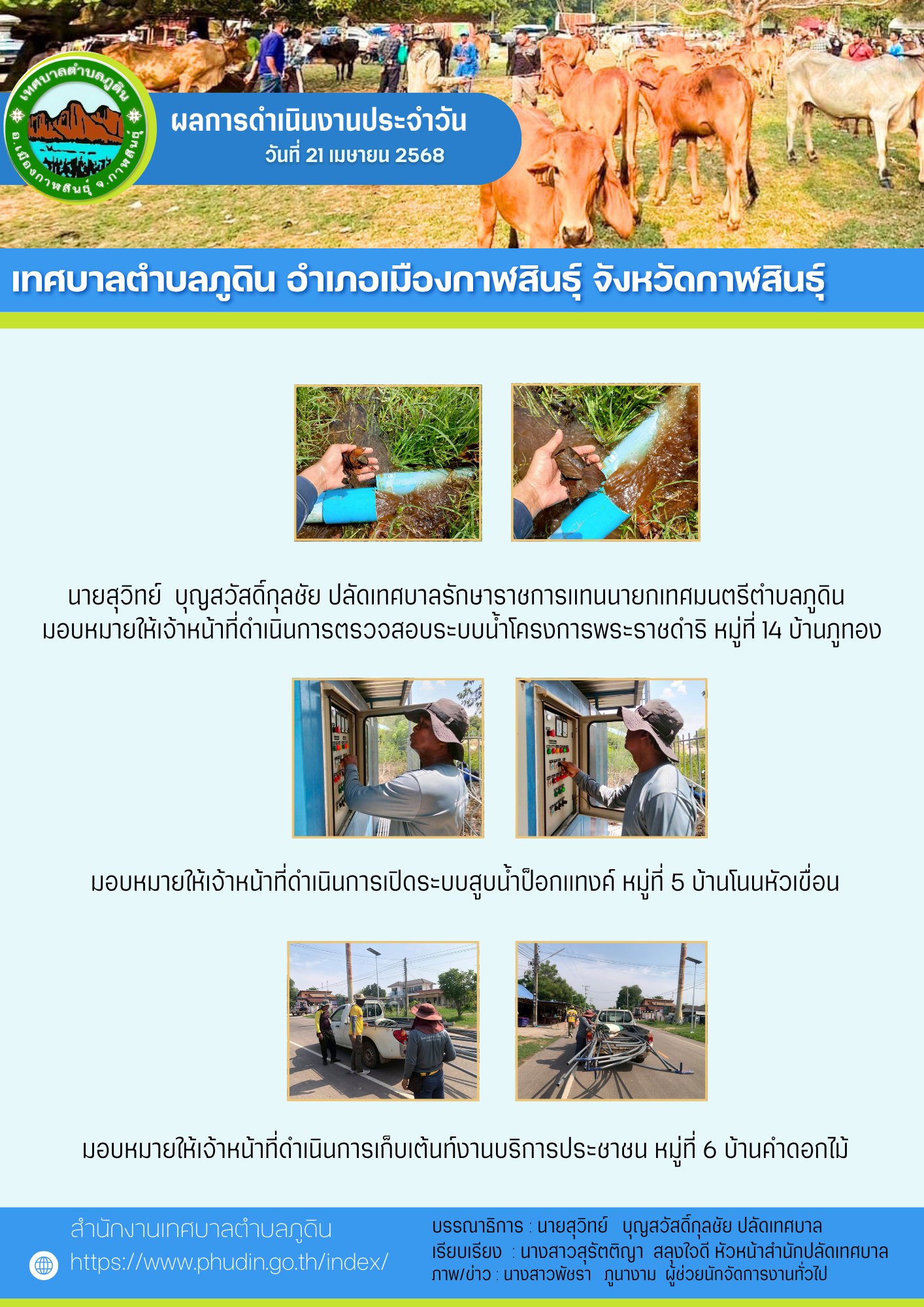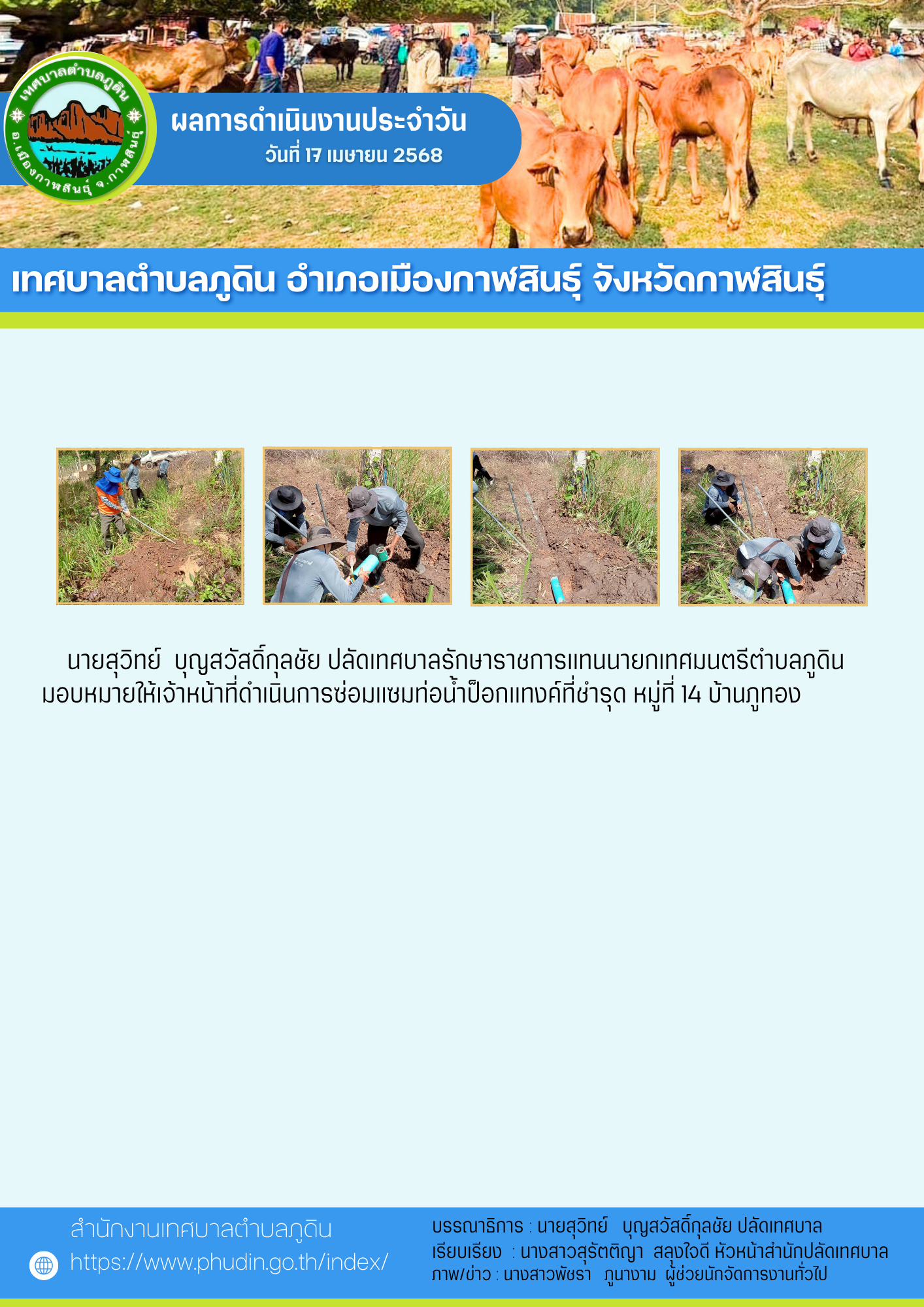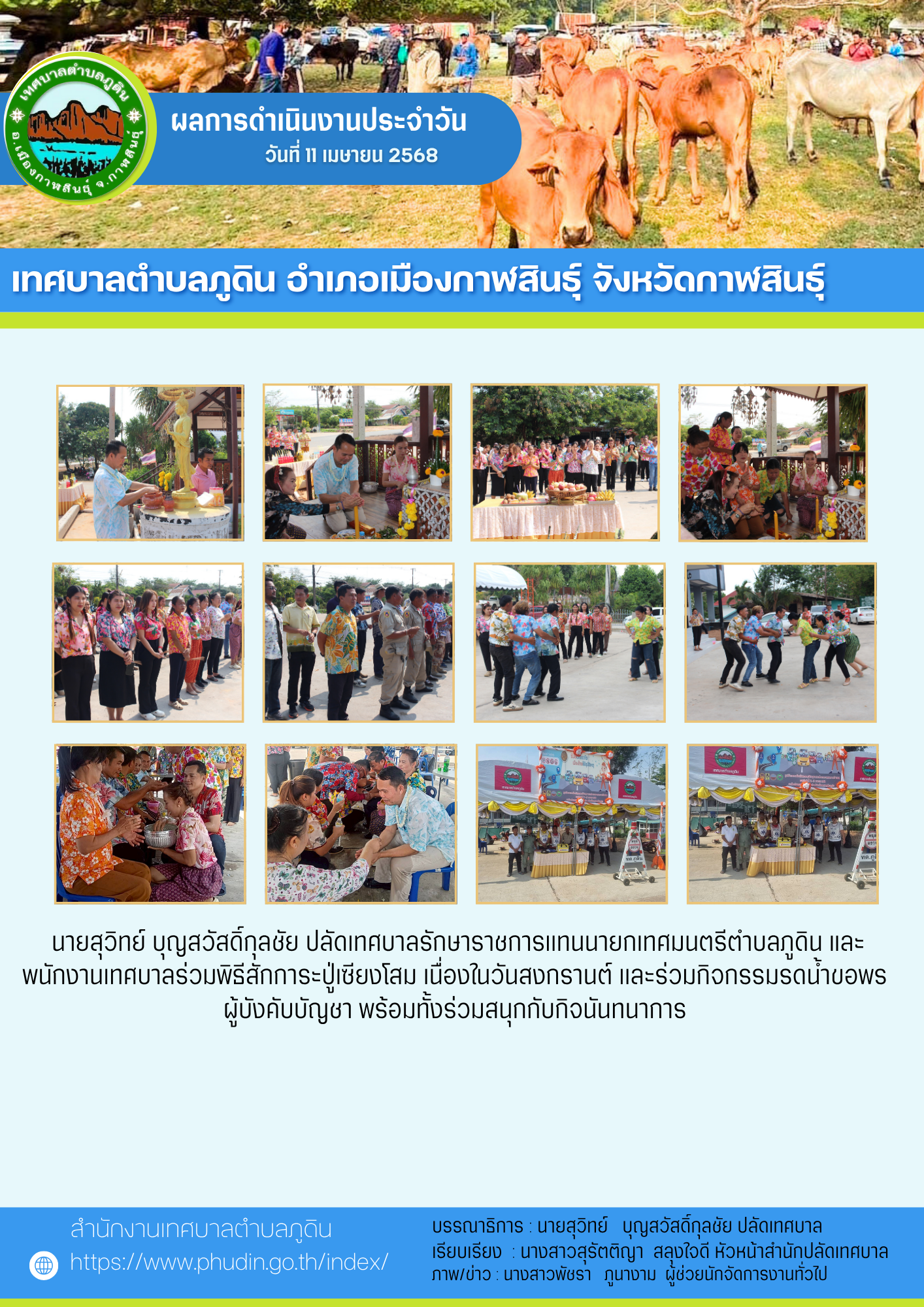 ยินดีต้อนรับ เข้าสู่เว็บไซต์ เทศบาลตำบลภูดิน อำเภอเมืองกาฬสินธุ์ จังหวัดกาฬสินธุ์