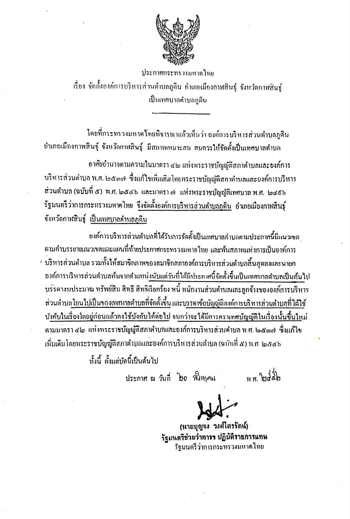ประกาศจัดตั้ง องค์การบริหารส่วนตำบลภูดิน เป็นเทศบาลตำบลภูดิน